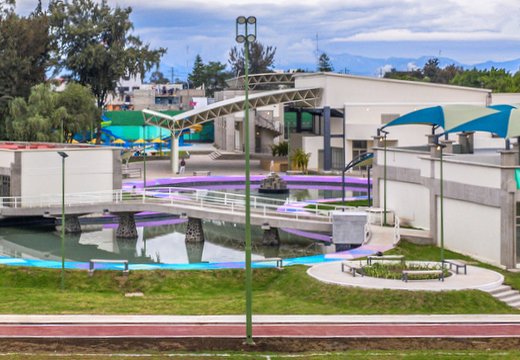 Un lago artificial da a ésta Utopía un espacio de esparcimiento y paseo para sus habitantes, quienes están familiarizados con las antiguas lagunas de Cuemanco.